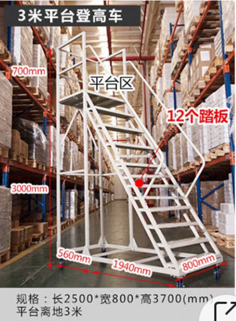 亞升倉庫登高梯庫房商超理貨取貨帶輪可移動工業(yè)平臺梯子登高車取貨凳